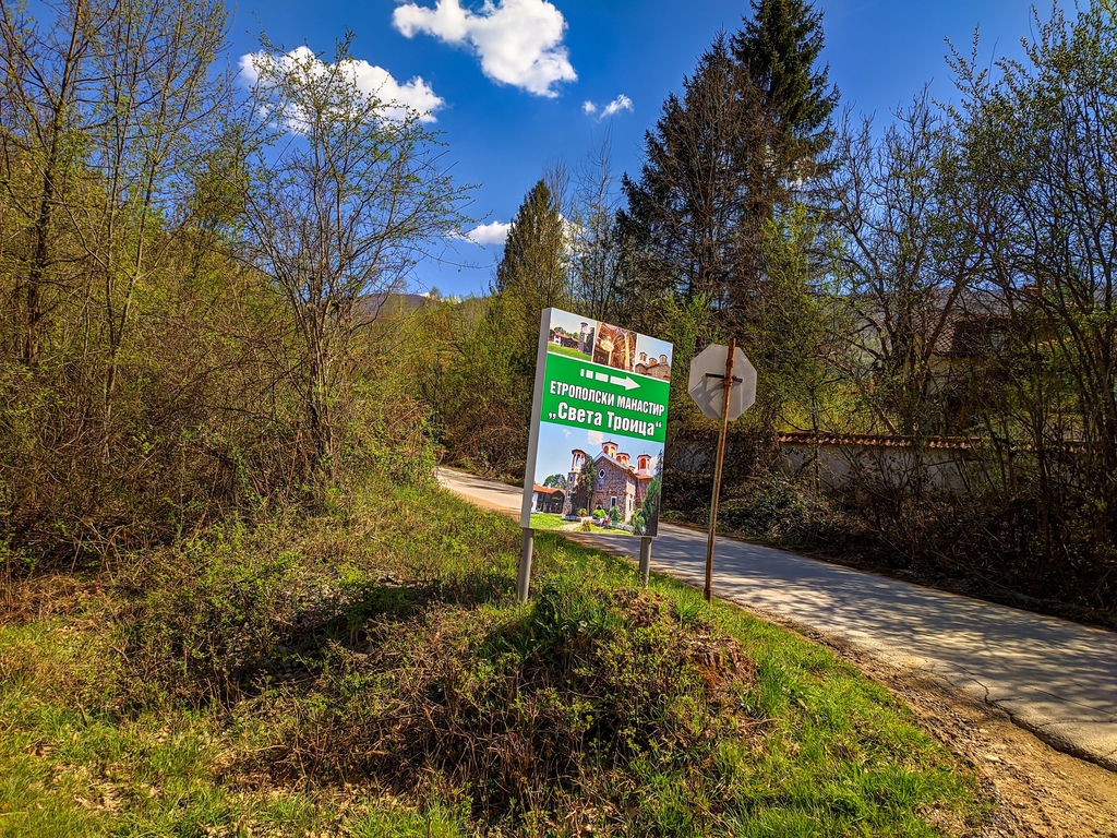 В с. Рибарица което е непосредствено до гр. Етрополе се отбиваме в дясно към Контрола №8 Етрополски манастир „Света Троица“.